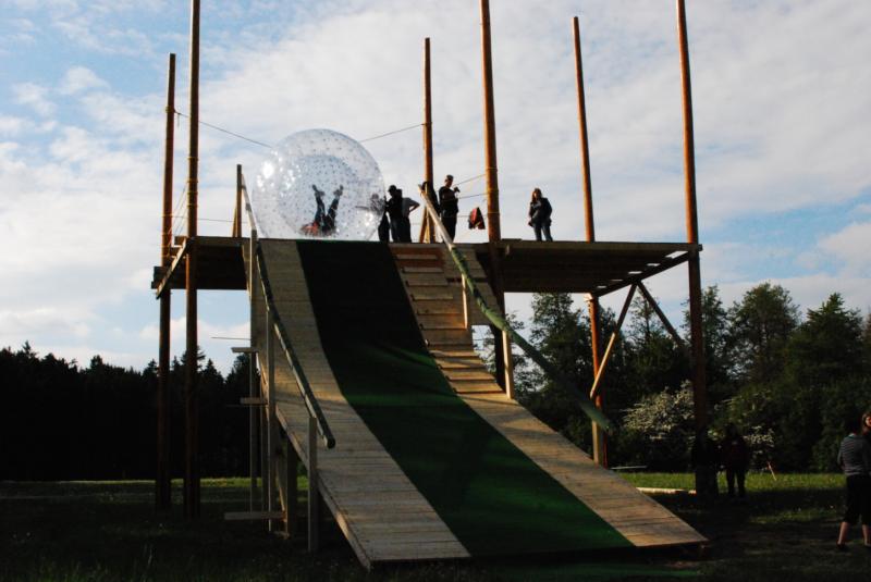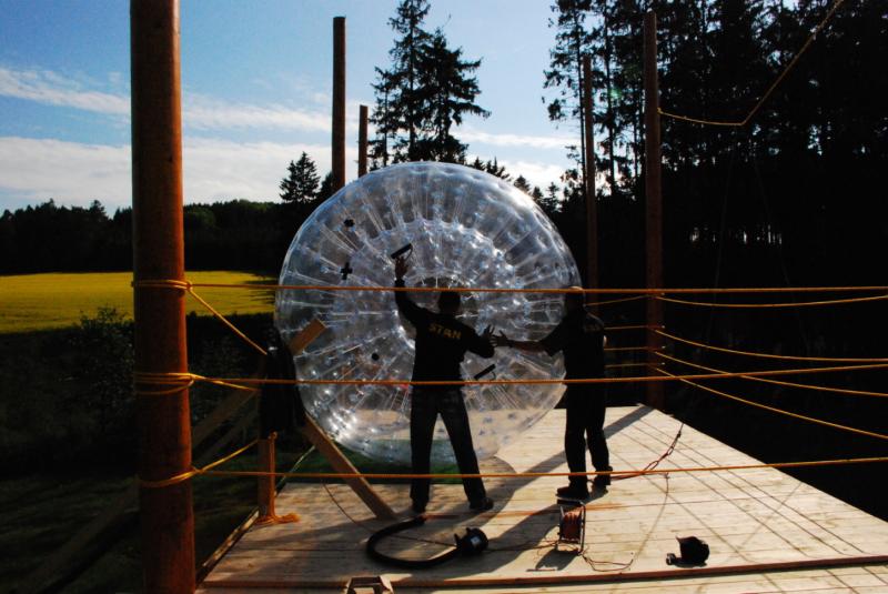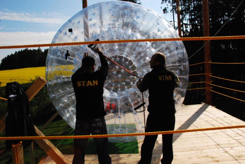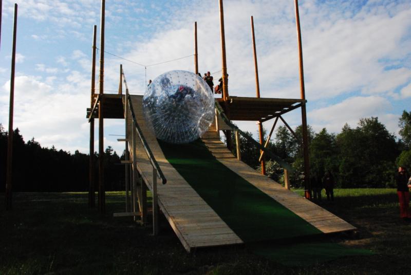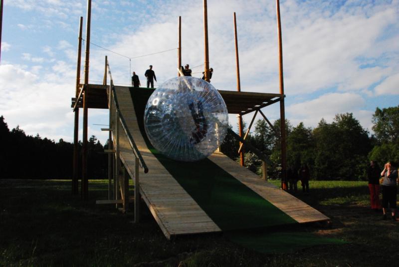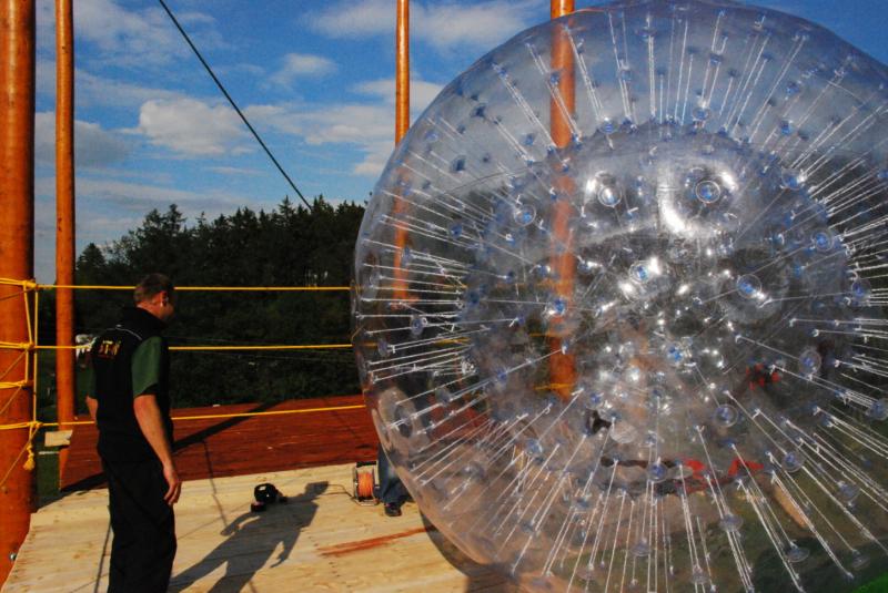 Je mimořádně zajímavou atrakcí. Účastník vystoupá do výšky cca 7 metrů. Na plošině jej již očekává náš instruktor a obří nafukovací koule. Do té odvážlivec vleze, upne se do popruhů a může se kochat pohledem ze sedmimetrové výšky, ale to jen do té doby, než instruktoři dají kouli impuls, a ona se s (velmi často ječícím) pasažérem, který zažívá v tu chvíli pocity, jako by byl v pračce, vydá po rampě dolů aby ještě několik desítek metrů pokračovala po louce, než se zastaví a propustí pasažéra, který se s lehce nejistým krokem souká ven a pokřikuje na diváky své pocity. Tato atrakce je vážně mazec. Standardně je rotoball řazen do programu Pandora PLUS a Outdoor Excellent, účastníci ostatních programů si ji mohou (v případě že to časová vytíženost této atrakce, případně školených specialistů dovolí) připlatit jako nadstandard, po celý rok 2009 za akční cenu 250,- Kč