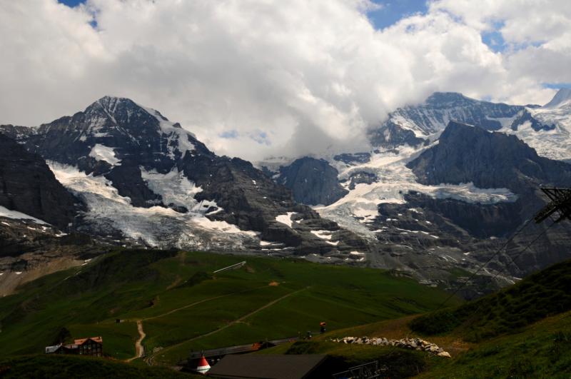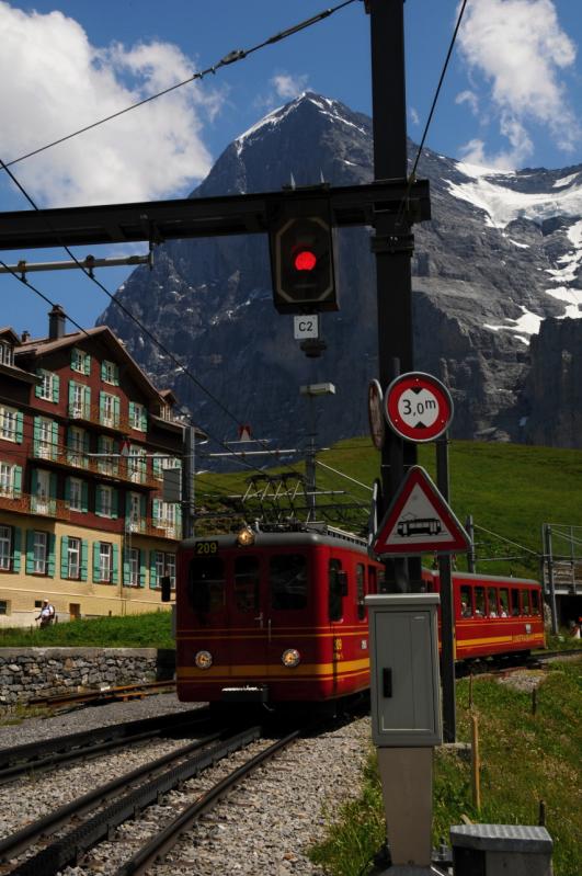 Pěkné převýšení nás dovedlo až do tohoto průsmyku, kam nevede jiná cesta než ta zubačkou, či ta po vlastních končetinách. Kleine Scheidegg je přestupní stanicí, kde se ze zelenožlutých zubaček přesedá na červené, které jezdí trasu Kleine Scheidegg-Jungfraujoch. Kleine Scheidegg je převážně zimním střediskem, čemuž odpovídá i fakt, že zde kromě nádraží, hotelů, restaurací a lanovek nenaleznete nic jiného.