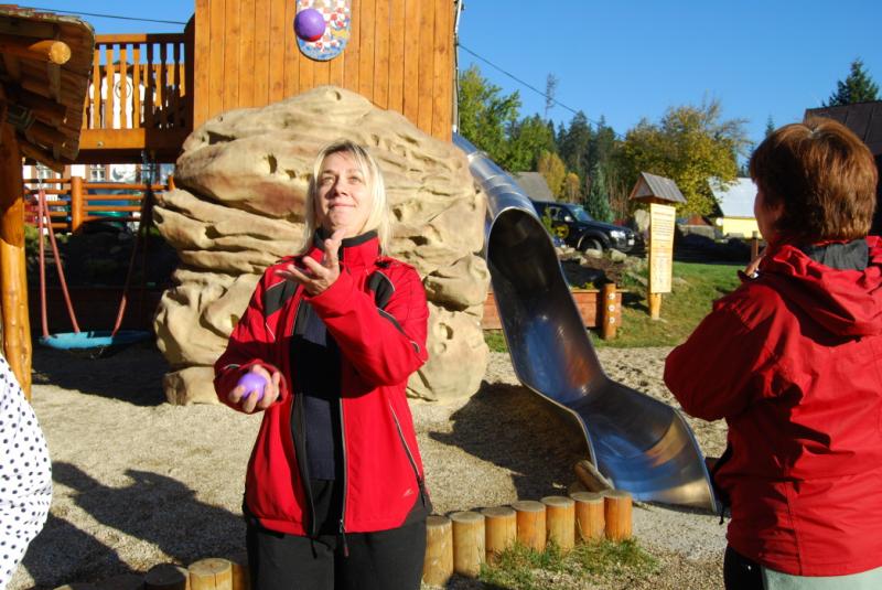 Školkobraní bylo také o výměně zkušeností co se týče práce s těmi nejmenšími. Proto si pro účastnice Simča se Cwakem přichystaly tvůrčí část a vyráběli jsme žonglovací míčky a žonglovali a žonglovali. Trocha rýže, pár nafukovacích balónků a téměř jsme museli žonglování násilně ukončovat :-) No podívejte se sami..