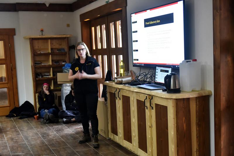 Následně jsme se přesunuli opět do tepla a vše si společně v závěrečné reflexi probrali. Celé školení bylo vedené v netradičním duchu, aby bylo naučné ale i zábavné. Hlavní vedoucí si tak v praxi mohli na malou chvíli zkusit to, co většinou vymýšlí a připravují oni pro naše táborníky. Mohli tak načerpat inspiraci jak dělat svoji práci ještě o kousek lépe. Do školení se aktivně zapojili i samotní majitele firmy Jirka s Lídou, za což jim moc děkujeme.