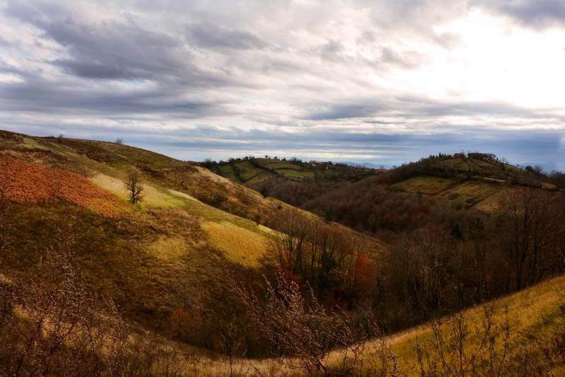 Další den jsme se po vydatné snídani vydali na pěší túru do Gerniku, další 16 kilometrů vzdálené vesnice. Počasí nám moc nepřálo, takže většinu času jsme šlapali v dešti, přičemž výhled na hřebenu nám kazila magická mlha. Sice jsme byli celí mokří, bořili se do bláta a jednou se dokonce drápali po čtyřech do kluzkého kopce, ale i tak měl náš pochod své kouzlo a na konci nás nic nepotěšilo víc než čepované pivo v hospodě a vynikající večeře u pani Marušky.
