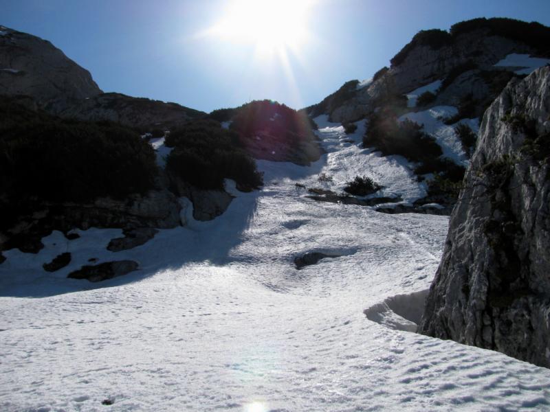 Květnový Dachstein byl opravdovým potěšením pro opravdové příznivce opravdu aktivně stráveného času. Třídenní expedice byla náročnější než kterákoliv týdenní. Brzo ráno jsme se vydali na cestu, vrchol byl v mracích, tak jsme nevěděli, jak to tam asi vypadá. Cesta se nám pomalu ale jistě měnila z kamenité na sněhovou..Rozdílu jsme si všimli brzy, nohy nám začaly podkluzovat. Naším cílem prvního dne byla chat Adamek Hütte, což znamenalo asi 1200 metrů převýšení. Po několika hodinách a několika stech metrech jsme nevěděli, jestli ta chata opravdu existuje. Ale nakonec jsme ji našli. Zbytek dne jsme proleželi, prospali a provařili. Ráno jsme vstávali brzo, batohy jsme nechali na chatě a vyšli jsme vstříc vrcholu Hoher Dachstein 2995 m.n.m. Bohužel bylo sněhu mnoho, sil méně a času ještě poskromněji, nastoupali jsme ještě asi 400 metrů od chaty, poté jsme se však vrátili, protože bychom sestup za světla určitě nestihli a pohybovat se po tmě na ledovci se nám příliš nechtělo. Celou dobu expedice nám krásně svítilo sluníčko a všichni jeli domů ať již více, nebo méně opálení, všichni však nadšení z nebývalého zážitku a sportovního výkonu.