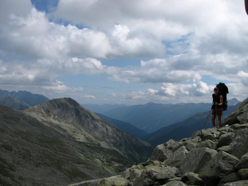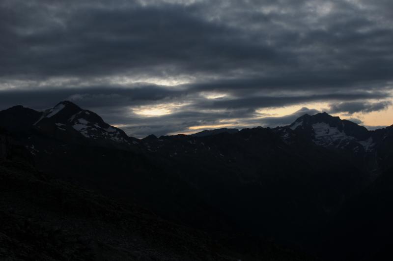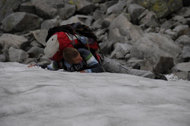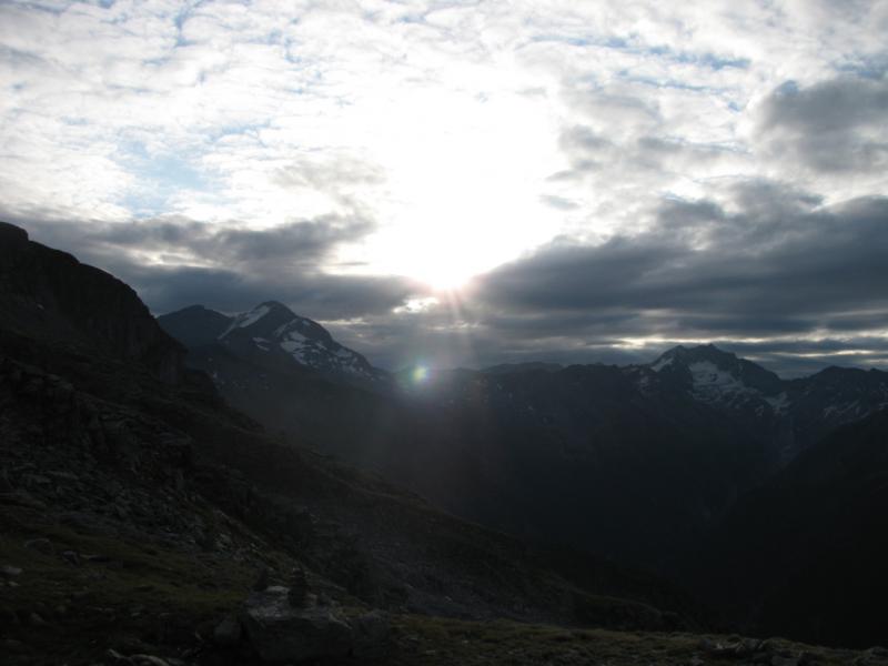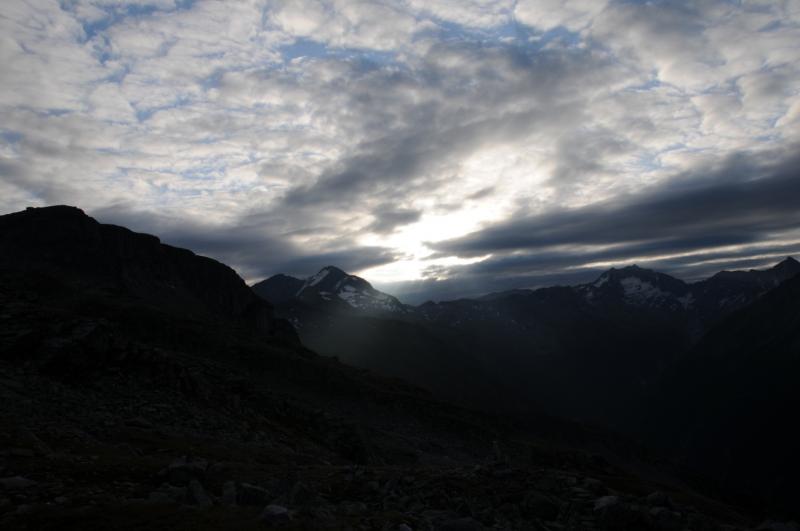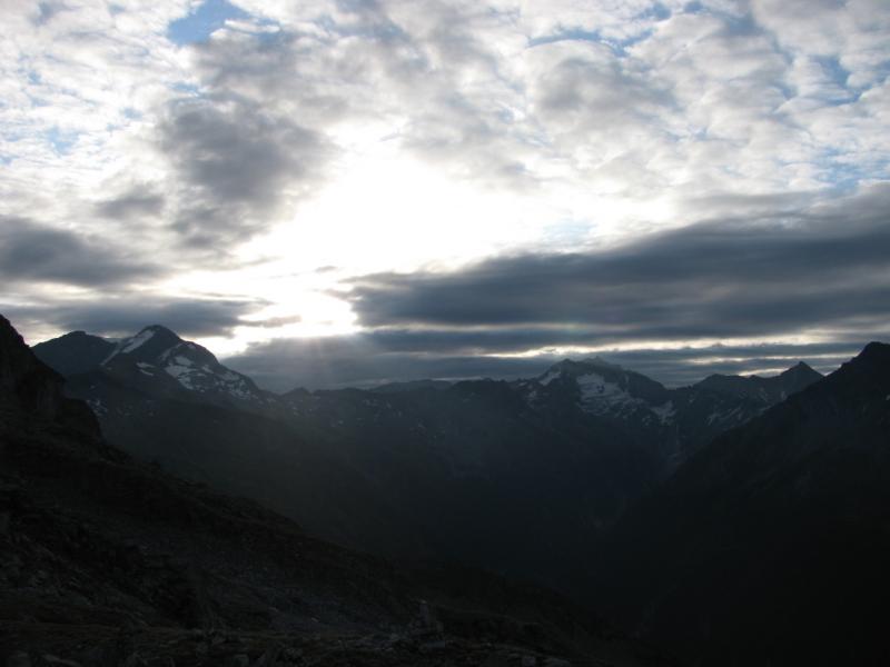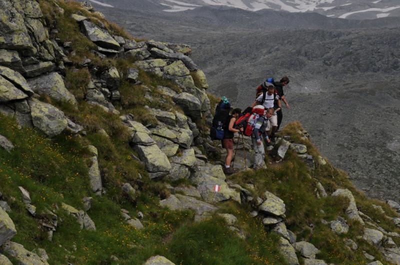 Startovali jsme ze Sportgasteinu ve výšce 1588 m.n.m.,první den jsme nastoupali v drobném dešti asi 900metrů a bivakvali v nádherné zařízené chatičce ještě s několika Holanďany.Ráno bylo krásné, slunce v šest hodin ráno nádherně osvětlovalo vrcholy kolem. Čekala nás cesta na Hannover Haus, odkud jsme měli namířeno na Ankogel. Na chatě jsme nechali věci a nalehko se vydali na Ankogel. Jeho hřeben je opravdu ostrý a kamenitý. Na vrchol jsme došli, udělali několik pěkných fotek, ale vše se brzy zahalilo do mraků a počasí se začalo kazit. Rychle jsme se proto sbalili a začali sestupovat k chatě, kterou jsme přes hustou mlhu viděli, až jsme stáli přímo ve dveřích. Samozřemě vevnitř seděli naši známí Holanďané, kteří na Ankogel evidentně nevylezli. Noc strávíme na stanici lanovky. Další den nás čeká sestup a cesta kolem raritně velké a moderní přehrady. Vskutku zajímavý pohled na betonové monstrum. Večer usínáme pod střechou nedaleko ovčího stáda. Ráno prší a čeká nás velké převýšení, nemůžeme vstávání odkládat do nekonečna, déšť během snídaně trochu ustal, proto se vydáváme na cestu. Odpoledne narážíme na bivak Ali-lanti,ve výšce 2685 m.n.m, kde část výpravy zůstává a vaří, jedna dvojice se mezitím vydává na sestup 1400 metrů pro auto...
