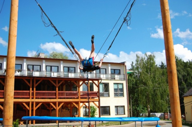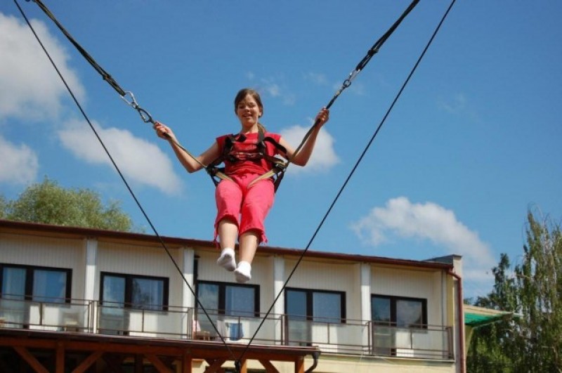 Bungee tramploína je trampolína kombinovaná s gumolany, díky kterým můžete skákat mnohem výše než na obyčejné trampolíně. Během výskoku můžete vyzkoušet různé akrobatické kousky, které normálně dělat nemůžete, velká odrazová plocha zajišťuje bezpečný dopad zpět na trampolínu.