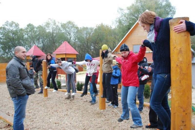 Překážky, ze kterých by se dalo spadnout jsou velmi nízké a dopad je bezpečný, jinak vás celou dobu jistí buďto přátelé a kolegové, kteří ještě čekají až na ně přijde řada, nebo instruktor.