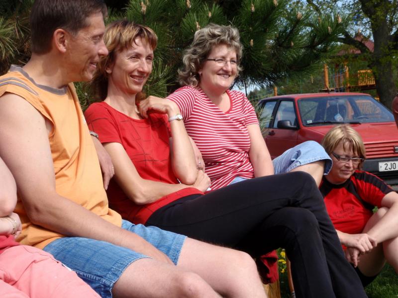 Na Relaxe nás přivítalo krásné slunečné ráno, posnídali jsme, šupli do batůžků svačiny, balíme materiál, nasedáme do aut a v koloně odjíždímě směr Rabštejnské skály:-) Parkujeme auta, cestu nahoru už musíme zvládnout po svých. Vyrazili jsme sice v davu, hezky za sebou, ale přeci jen převýšení několik stovek metrů bylo znát a někteří z nás se propadli jaksi nakonec naší početné výpravy ( včetně mně :-)),byť jsem to okecávala tím, že to "čekuju" zezadu :-)) Konečně jsme na místě. Zkoušíme vysílačky: "ručník volá mýdlo", " mýdlo slyší" a rozdělujeme se na dvě skupiny. První vyráží společně s Lídou na Rabštejnskou vyhlídku, druhá s Kubou lézt na skály. Cestou na vyhlídku obdivujeme okolí a hlavně přítomné horolezce. S údivem přihlížímeme a nevědomky nahlas komentujeme:-):-) ( Fakt jsme vám nechtěli radit :-):-) Druhá skupina si mezitím zkouší lézt po skalách, střídají se při jištění, fotíme, točíme a vůbec si ten krásný den užíváme. Balíme materiál a scházíme k hospůdce. Zde se žije na vysoké noze...a to doslova :-) Vychutnávat si pivo na lavičce, která je asi tři metry nad zemí...malé občerstvení přišlo vhod a teď nás čeká příjemná cesta...z kopce dolů. Nasedáme do aut, vracíme se na Relaxu a těšíme se na pozdní oběd. Chvíli si dáchneme a už jsme zase v pohybu. Doháníme co jsme v pátek nestihli, střídáme se na vysokých lanech a lezecké stěně. Zájemci pak vyráží se Šouvitem na paintball: Výklad o paintballu, kde a kdy se vzal, formy her, zbraně, střelivo, bezpečnostní pravidla, nafasování zbraní a střeliva, rozdělení do týmů, tajná domluva strategie, rozmístění po herní ploše a silné zvolání: "Hra". Statečně zasaženi, jako vítězové i poražení se vracíme zpět na Relaxu.